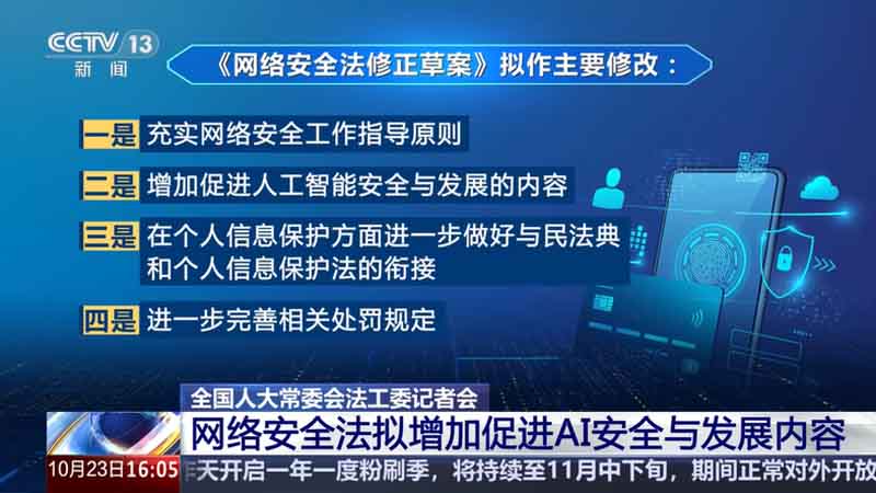 [视频]全国人大常委会法工委记者会 网络安全法拟增加促进AI安全与发展内容