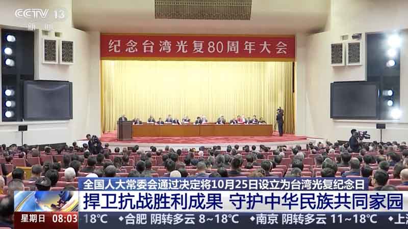 [视频]全国人大常委会通过决定将10月25日设立为台湾光复纪念日 捍卫抗战胜利成果 守护中华民族共同家园