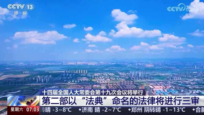 [视频]十四届全国人大常委会第十九次会议将举行 第二部以“法典”命名的法律将进行三审